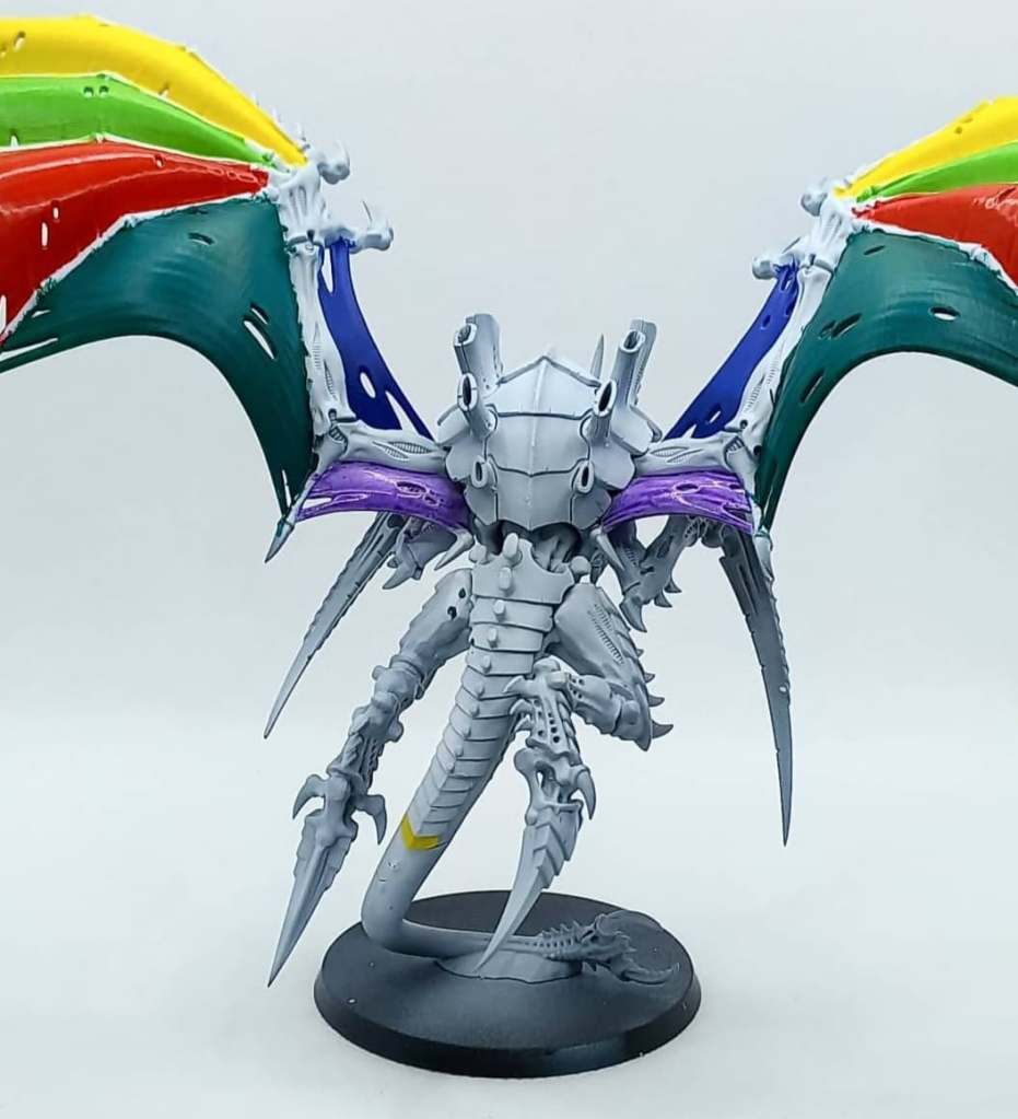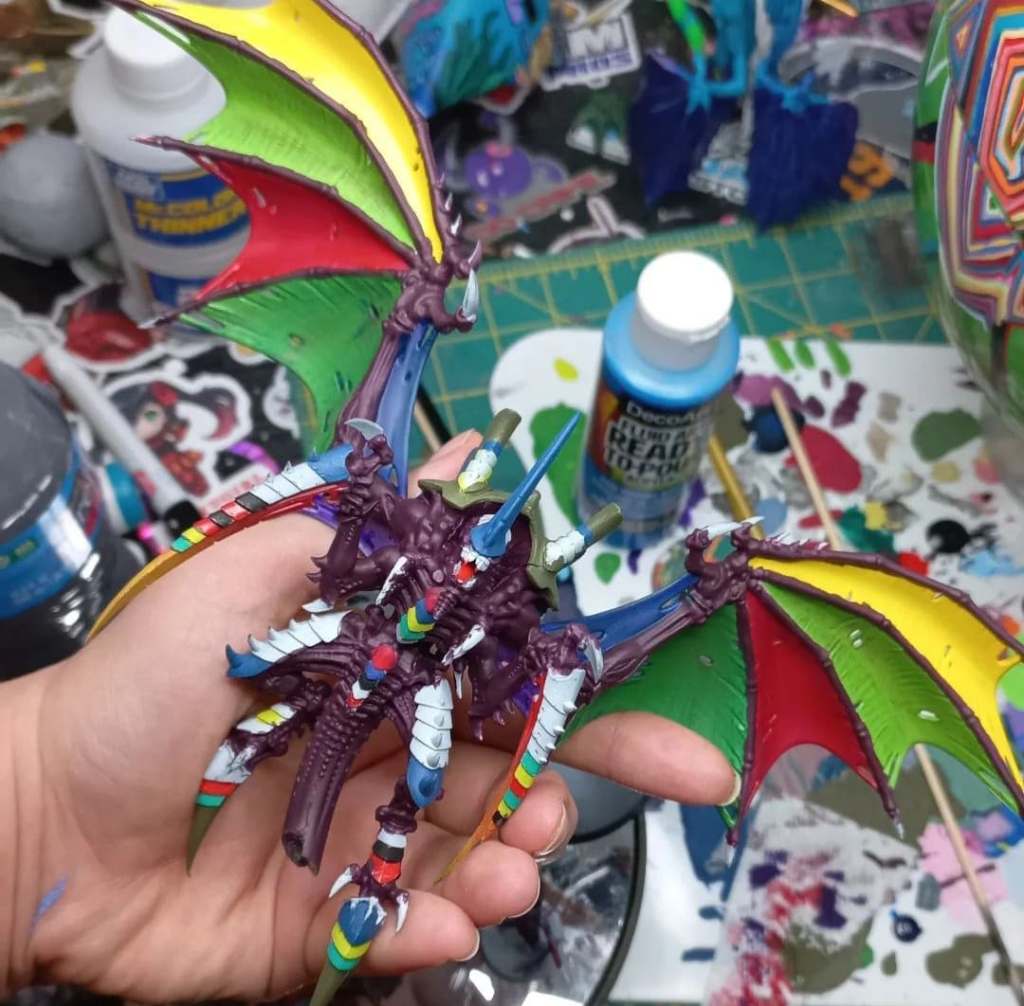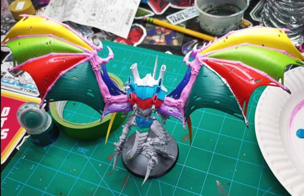 Painting it was another story. I initially had an idea in mind of this pink rainbow ‘nid. Each wing would be colorful and bright with scale armor to match. So after a nice white primer, I embarked on my quest for color.