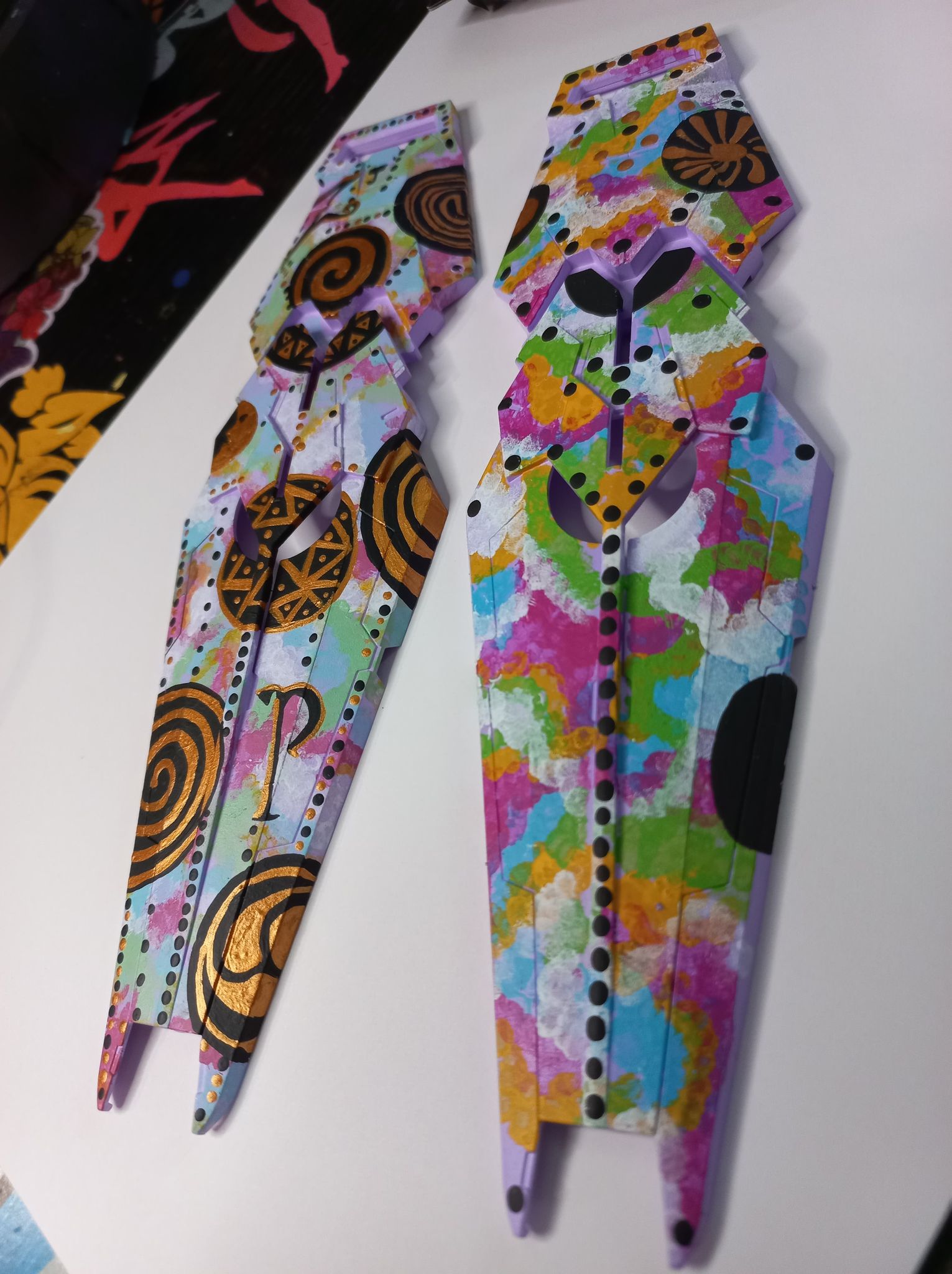 Next, I moved to the arms and the rest of the body and started painting the shield. The color scheme was very random and just a mash-up of abstraction and Celtic themes. Very much like a mythic street art style.