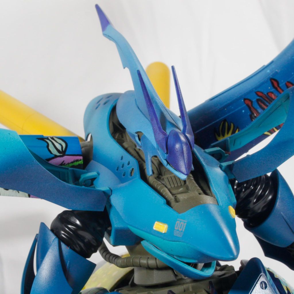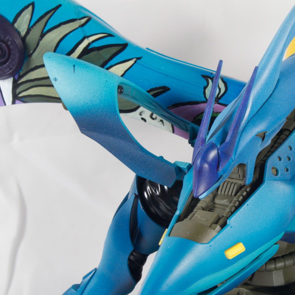 I didn’t do a lot of details on the hip, crotch, torso and head. There’s a hint of gradient on it. I went with using yellow on the tanks and smaller details to provide some color separation. I did, however, attempt waterslide decals. I learned that I did not get it glossy enough so you can see some silvering on the edges. That’s okay though. It’s a learning curve.