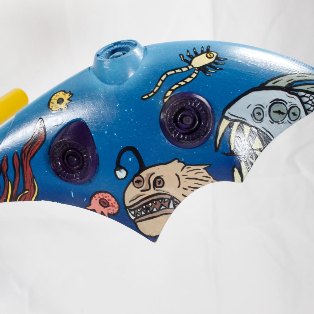 I ended up sketching my creatures freehand on some paper before transferring them onto the kit. Some are based on real-life sea creatures and some are just straight up from my imagination.