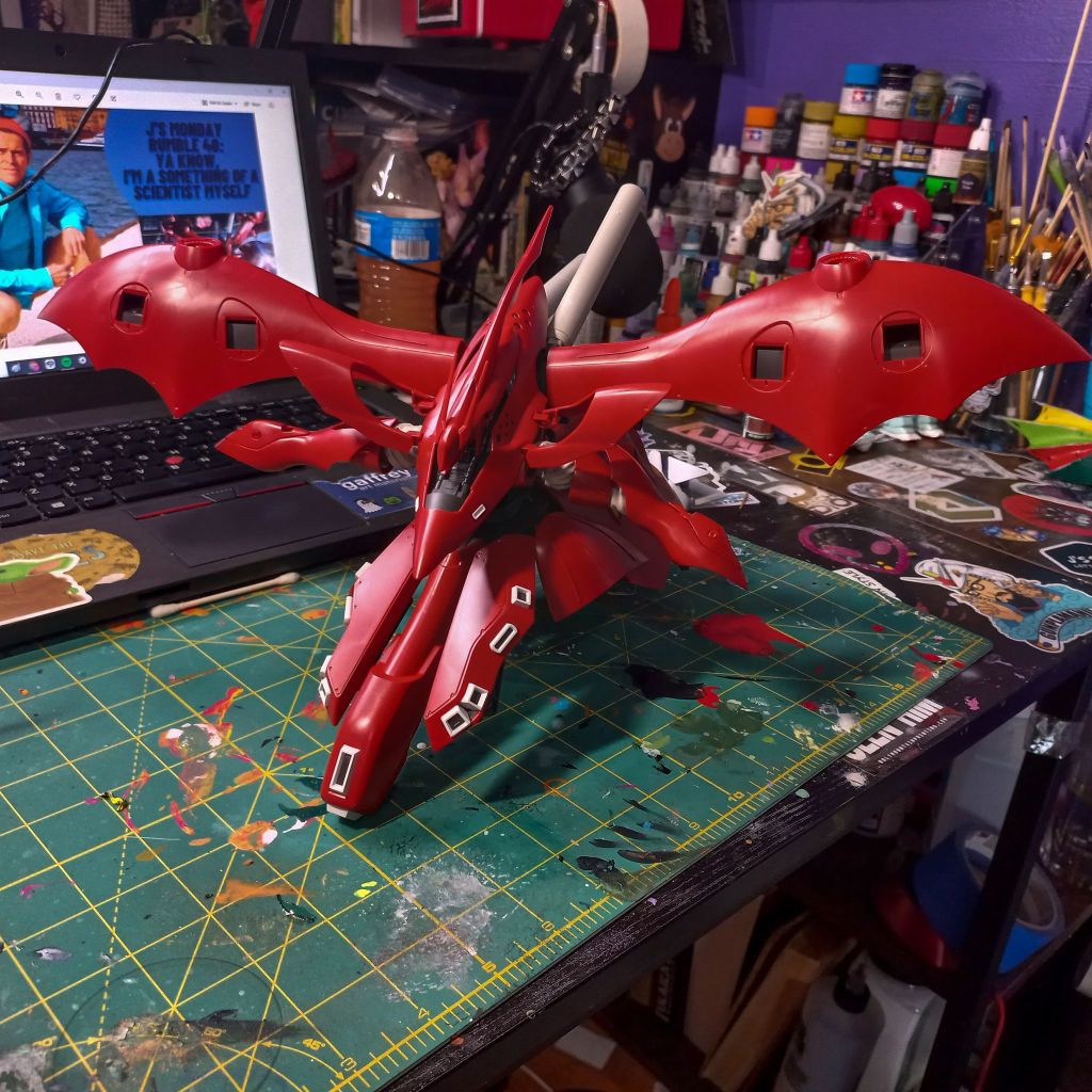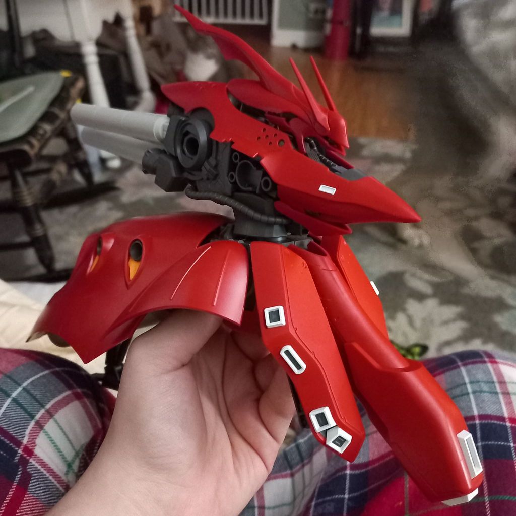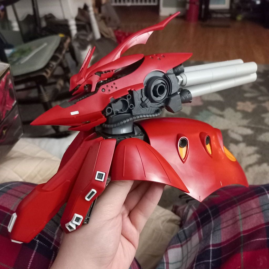 I was lucky enough to receive an HG Nightingale (Char piloted this) from my mother on Christmas day. What a box! This HG honestly runs the same size as an MG but with fewer parts. It’s about 40cm wide and 20ish cm tall when complete.