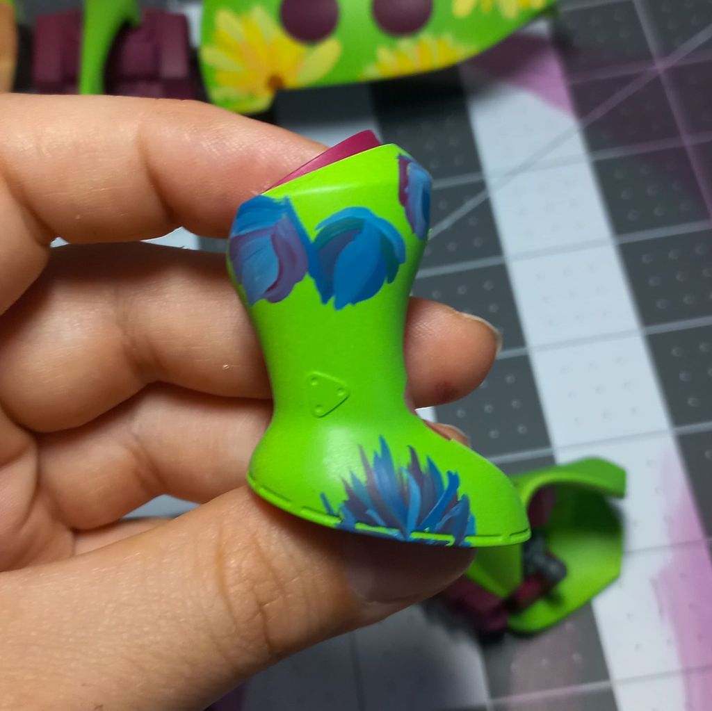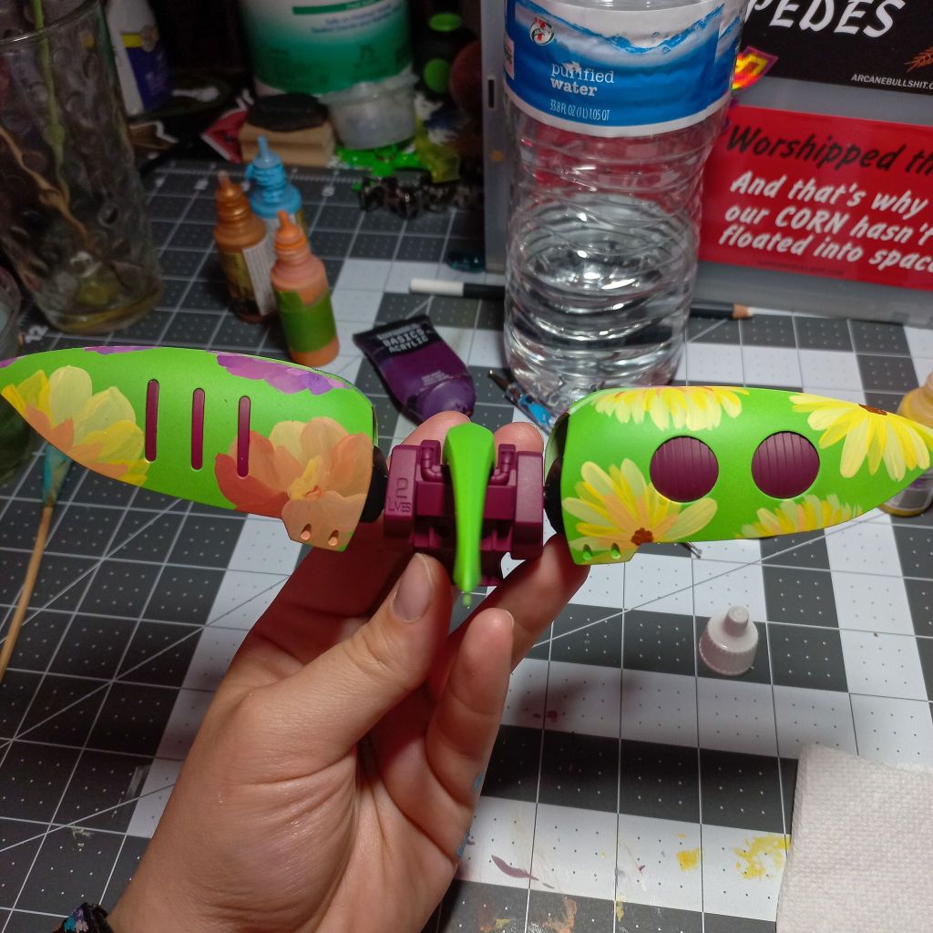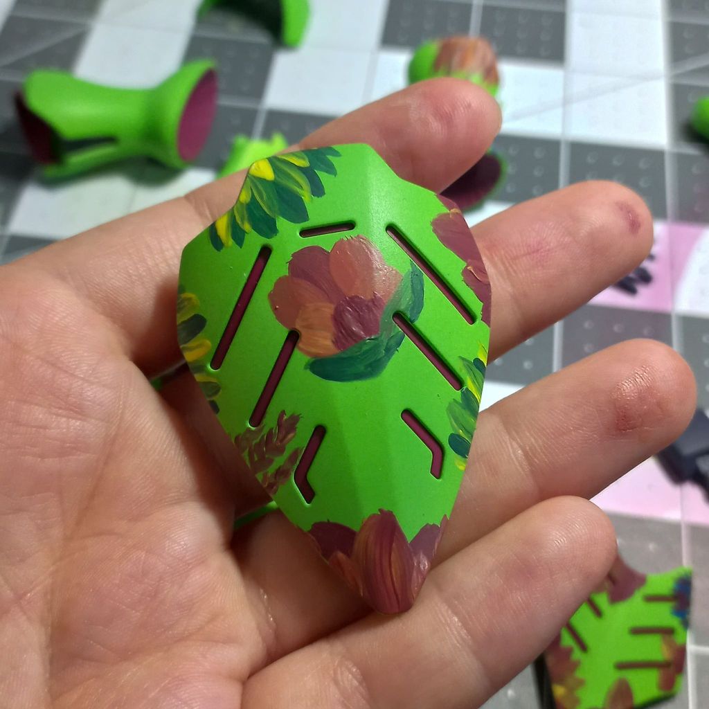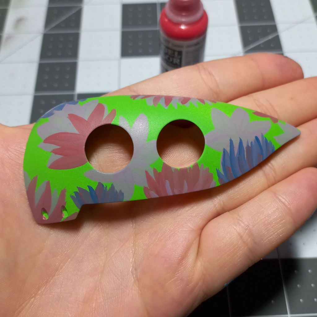 The flowers are currently being hand painted with a blend of Citadel, Liquitex, and other acrylic paints.