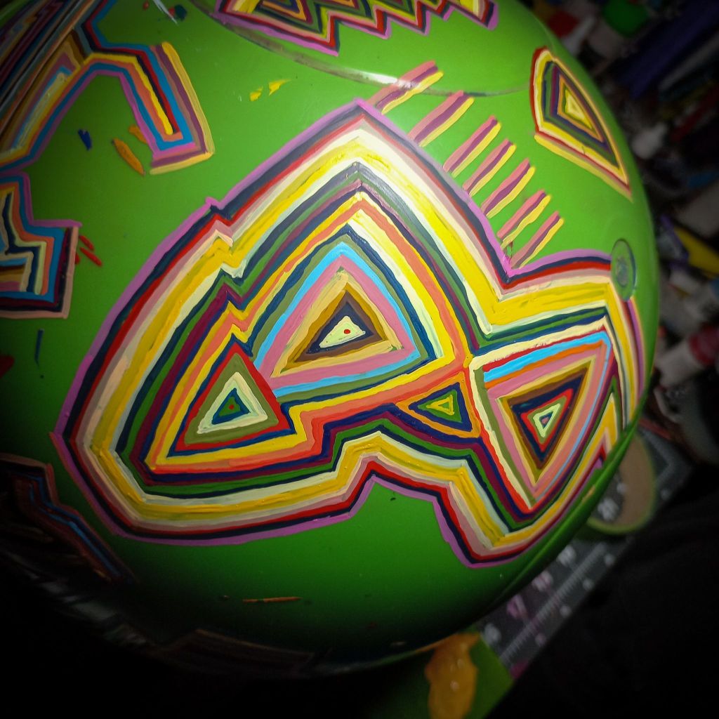 I’m nearing the end of this guy. Each brushstroke is one step closer to finishing up the base layer! I really want to do a paint pour inside on this one but I’m still trying to figure that one out. I want something to keep with the urban idea I have in my head.