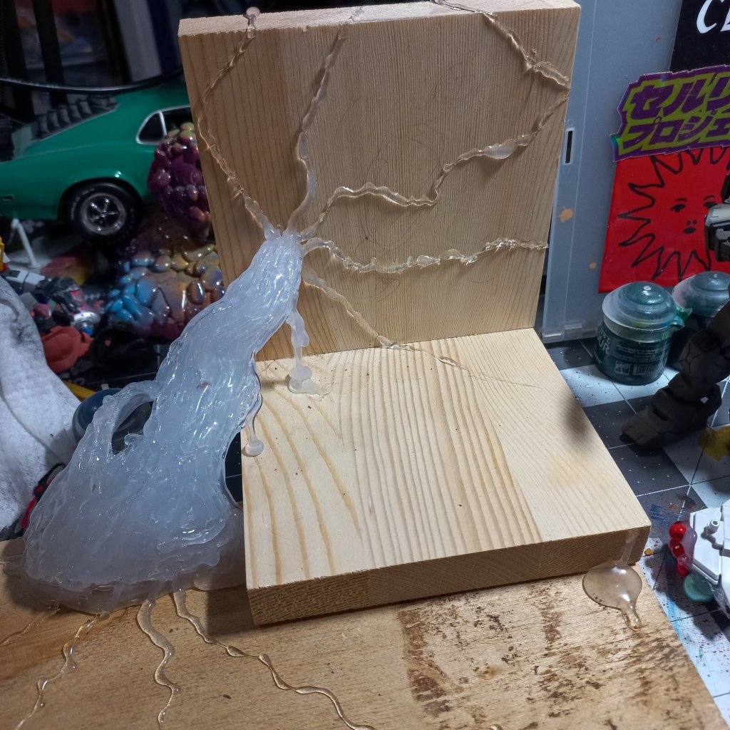 I’m using hot glue to attempt to build terrain for the diorama. I was going to use some random wood scraps that I had laying around but I was too fond of their shapes to do so. This part, for example, took me a couple minutes minus the cooling times.