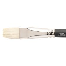 The flat brush is a square brush. The bristles are widely arranged but not thick. A flat brush with short bristles will hold less paint than a flat brush with long bristles (which will hold more).