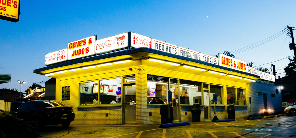 Shout out to Gene and Judeβs. Double dog, pickles, peppers, and fries. Thatβs my order.