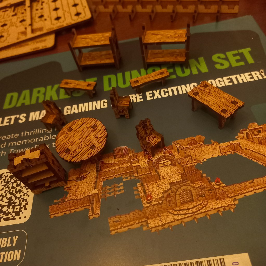 The next part of my weekend was spent building these cool little terrain/dungeon bits for my partners’ DND campaigns. They were easy to assemble, little glue required. The only downside was that some of the runners seemed to be missing, and orders got messed up. Can’t knock the company, Tower Rex, since they’re based in Ukraine.