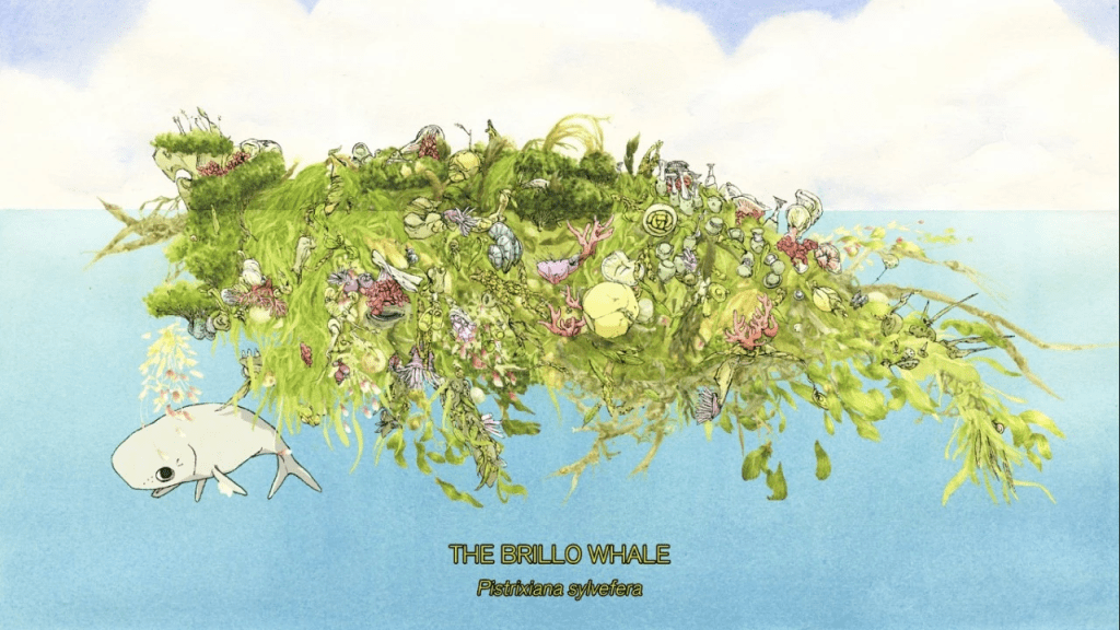 This documentary follows the birth of a young Brillo whale male calf. A Brillo whale is a fictional species of whale created by N.O. Marsh. They form symbiotic relationships with a whole variety of other species. The calf’s mother forms relations with several botanical species, and venomous worms, and looks like several barnacle types. A true wonder of a living, breathing ecosystem.