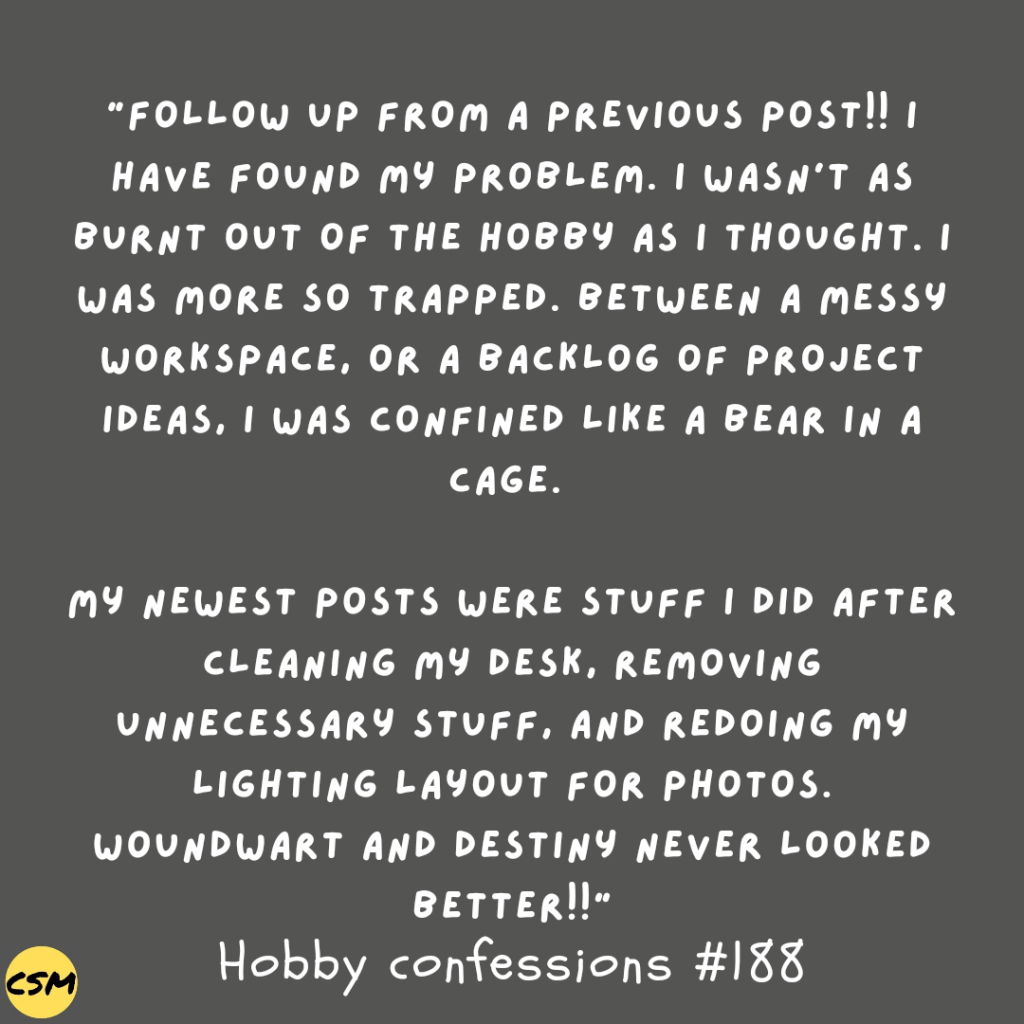 Over a few months ago I started an anonymous hobby confession submission form for individuals to vent, voice concerns, discuss issues, or just be weird with no judgment.