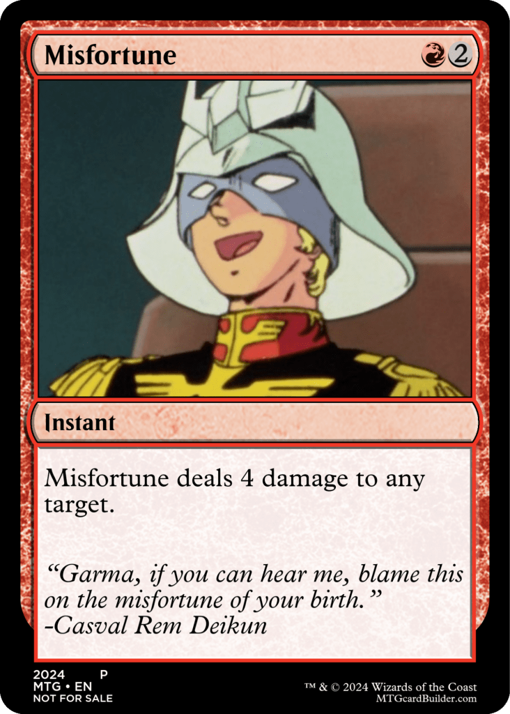 For those of you unaware, the color pie is the base color of the game. Red, blue, white, green, and black. All of them have their characteristics and themes that I want to match to the characters in the Gundam series as best as I can.