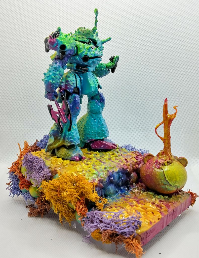 The final step was gluing down some colored lichen and making a small UV resin coating on the base for some G O O P.
