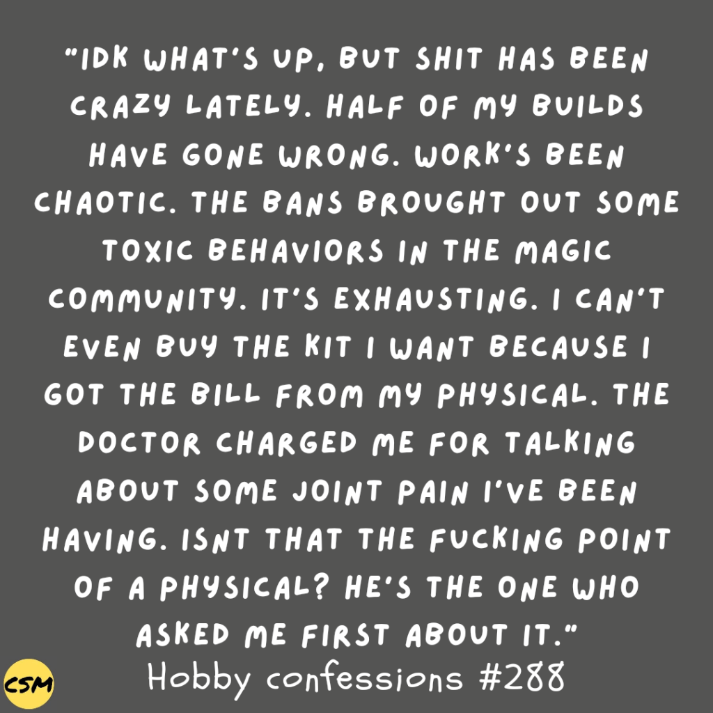I started an anonymous hobby confession form for individuals to vent, voice concerns, discuss issues, or just be weird with no judgment.