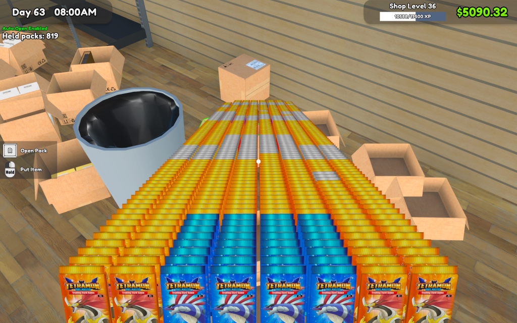 I have sinned, according to some of my gaming friends, by adding some simple mods. One for moving the trash can from outside. Another is for choosing cash or card payments. I decided to go with all card payments. One mod I specifically like is holding more booster packs when ripping them.