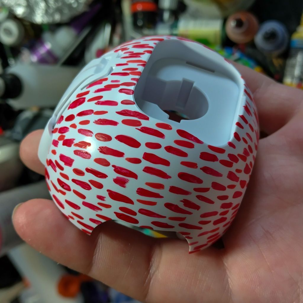 I mixed several reds and made small tally marks on the apex in layers. These marks were built up until the entire Apex model was covered. Then I unified the reds using an Army Painter Red Speed paint to give them a consistent tone.