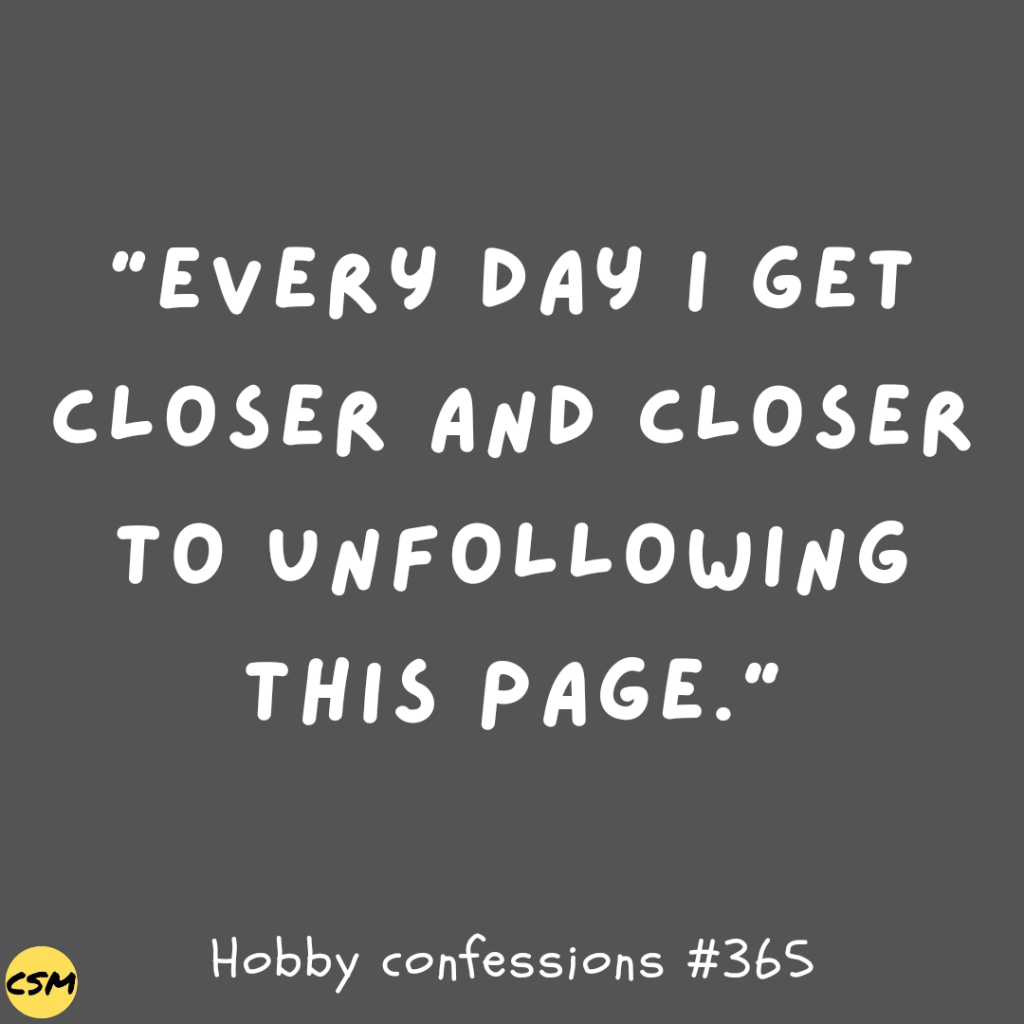 I started an anonymous hobby confession form for individuals to vent, voice concerns, discuss issues, or just be weird with no judgment. What’s really rad about this batch is that it’s our one-year mark of starting these confessions! Anon #365 will feature several confessions that didn’t fit the bill!