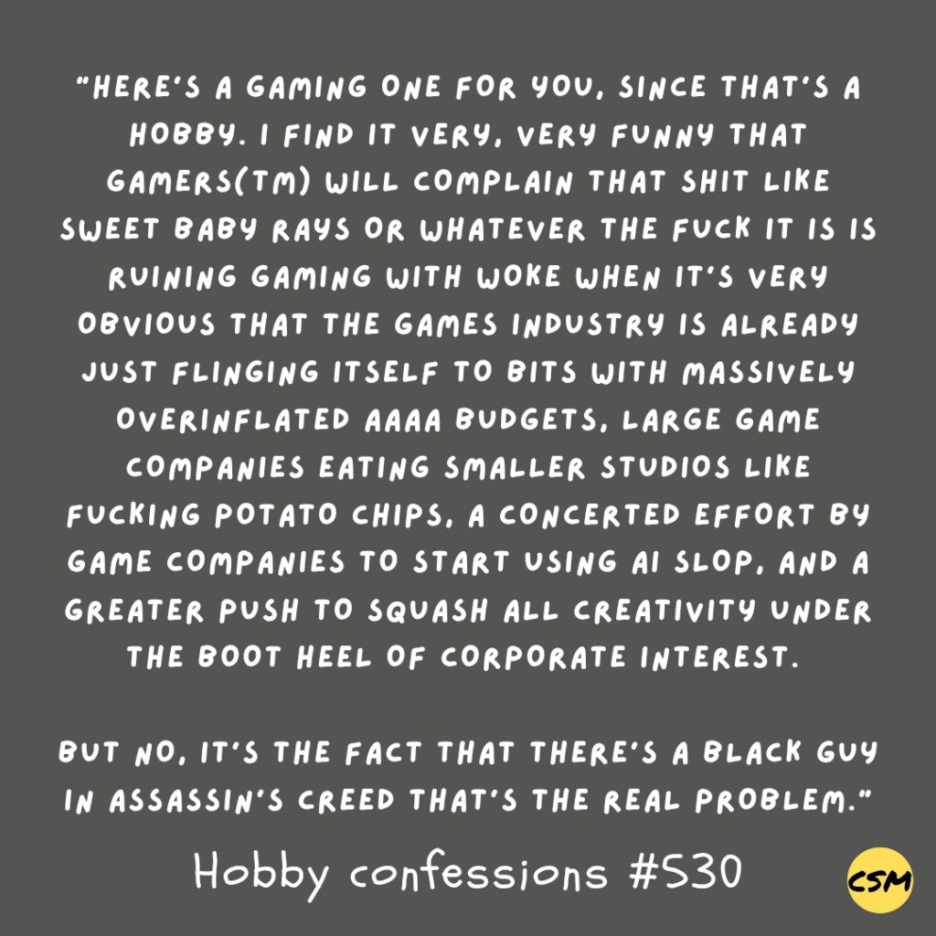 I started an anonymous hobby confession form for individuals to vent, voice concerns, discuss issues, or just be weird with no judgment.